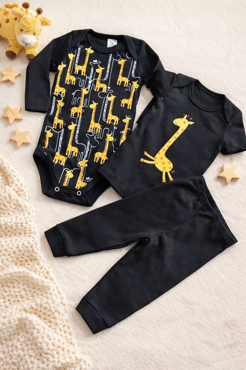 Praticidade e conforto em um único kit! Este conjunto de 3 peças é perfeito para o guarda-roupa do seu bebê. Composto por um body de manga curta, um body de manga longa e uma calça, todas as peças são feitas em 100% algodão, garantindo maciez, conforto e respirabilidade para a pele delicada dos pequenos. As estampas divertidas em cada body adicionam um toque de alegria e charme ao visual. Um conjunto versátil e essencial para o dia a dia.