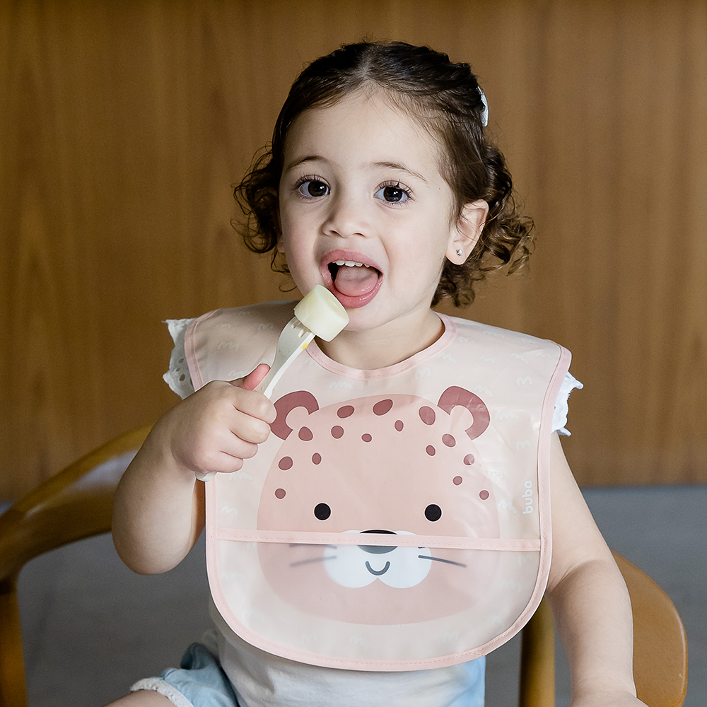 Mantenha a hora da refeição mais limpa e divertida com o Babador com Bolso da Buba.