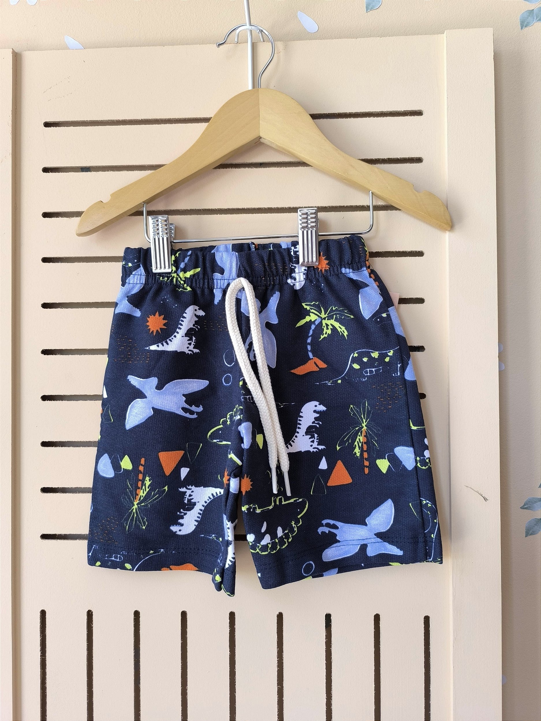 Conforto e diversão para o seu pequeno aventureiro! Nossa bermuda infantil é a escolha perfeita para um visual moderno e super descontraído. Feita em moletinho, ela é macia e leve, garantindo total liberdade de movimento para as brincadeiras do dia a dia. A estampa divertida de dinossauros vai encantar a criançada e o cordão frontal no cós garante um ajuste perfeito. É a peça ideal para os dias de calor, passeios ou para relaxar em casa.