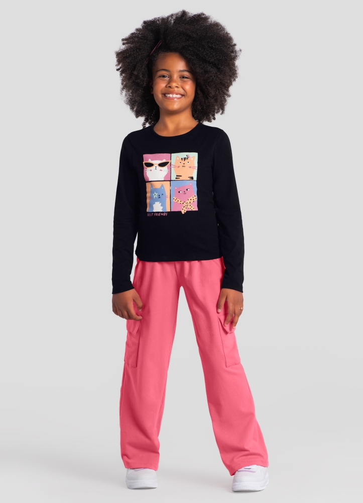 Possui gola redonda, mangas longas e uma charmosa estampa localizada, que deixa o visual moderno e fácil de combinar com diferentes looks infantis.