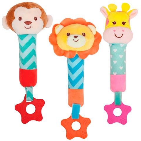 A diversão e o alívio da dentição se unem nas charmosas Buzininhas com Mordedor da linha Animal Fun da Buba!