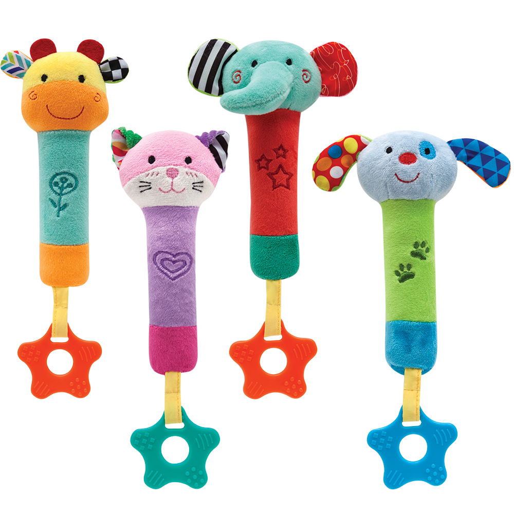 O Chocalho de Pelúcia com Mordedor da Buba é perfeito para estimular os sentidos do bebê de forma divertida. Possui pelúcia macia, cores vibrantes e mordedor texturizado que ajuda a aliviar o desconforto da dentição.