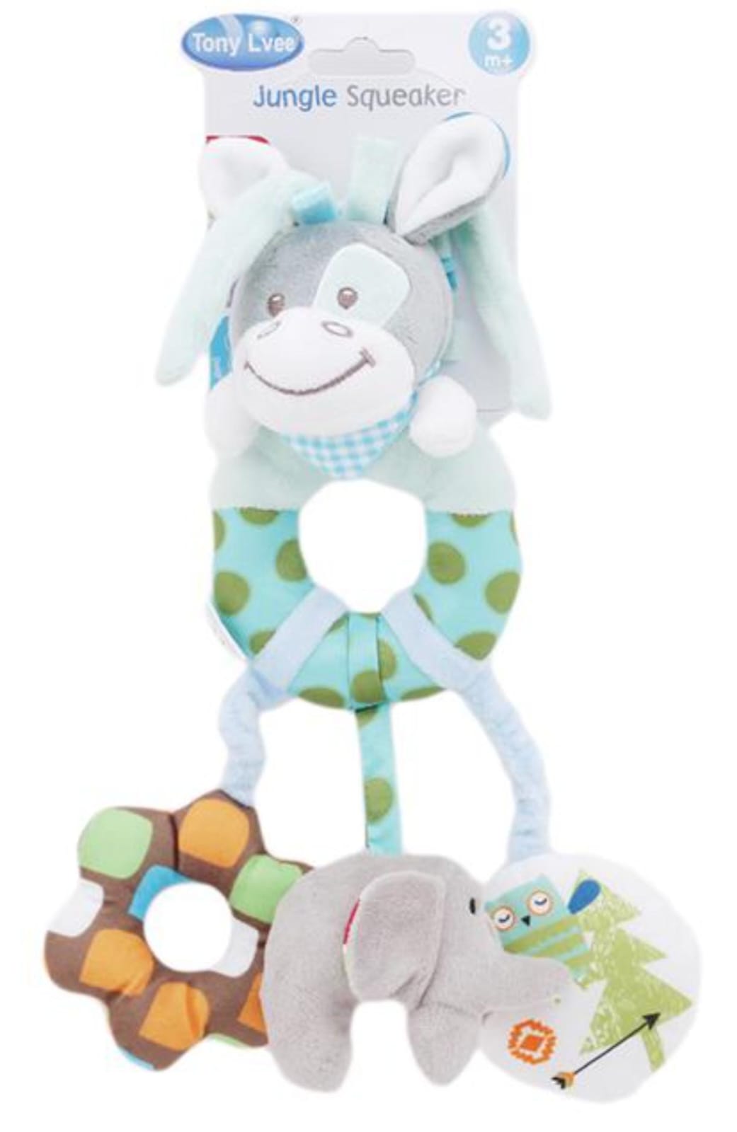 Chocalho/mordedor de mão com pendentes em pelúcia multicolorido para bebê animais