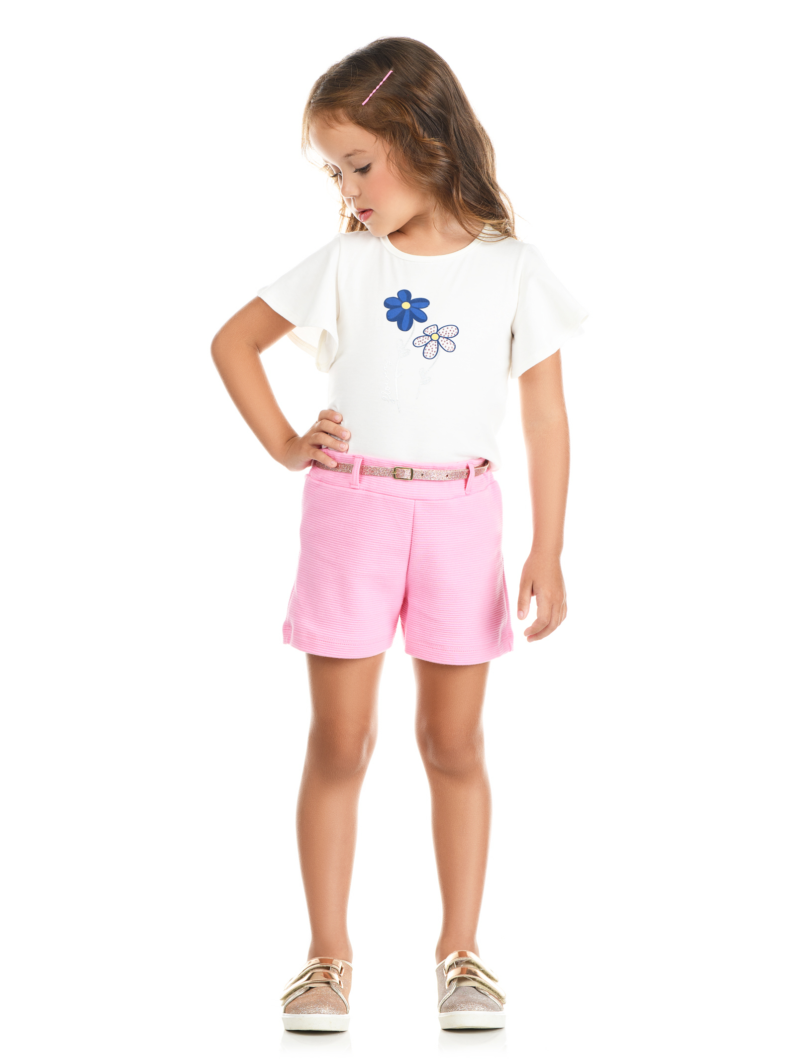 Conforto e estilo para os dias de diversão da sua pequena! Este conjunto é a escolha perfeita para um visual moderno e super charmoso. A blusa em meia malha é leve e macia, garantindo total liberdade de movimento para as brincadeiras. A estampa de flor em silk possui um lindo detalhe de pedras, que dá um toque especial de brilho. O short em gorgurão é super confortável, e o cinto com glitter adiciona um toque extra de glamour. Feito com materiais de qualidade, este conjunto é ideal para passeios e atividades, proporcionando um visual cheio de personalidade e conforto!
