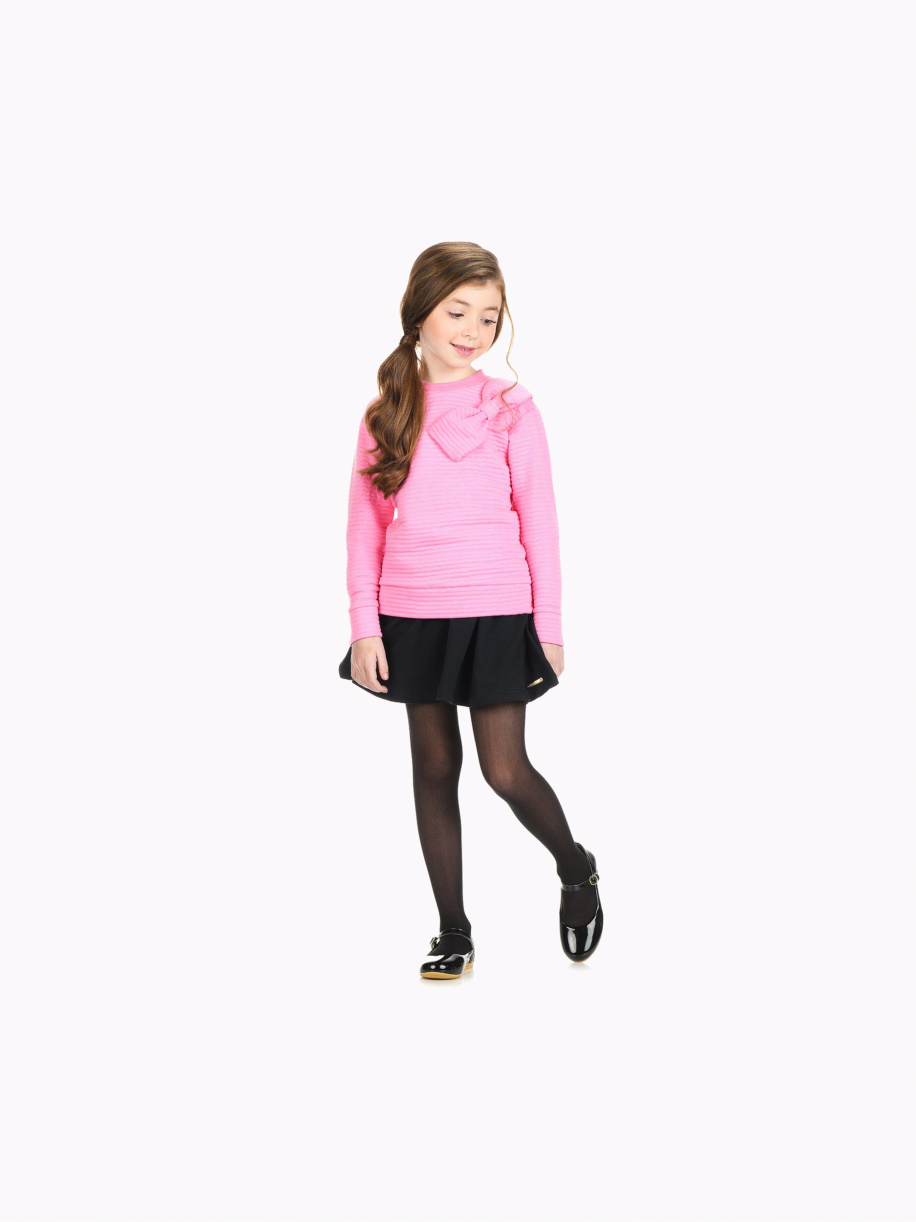 O shorts saia em meia malha complementa o conjunto com leveza e liberdade de movimentos, garantindo conforto durante brincadeiras, passeios e momentos em família.