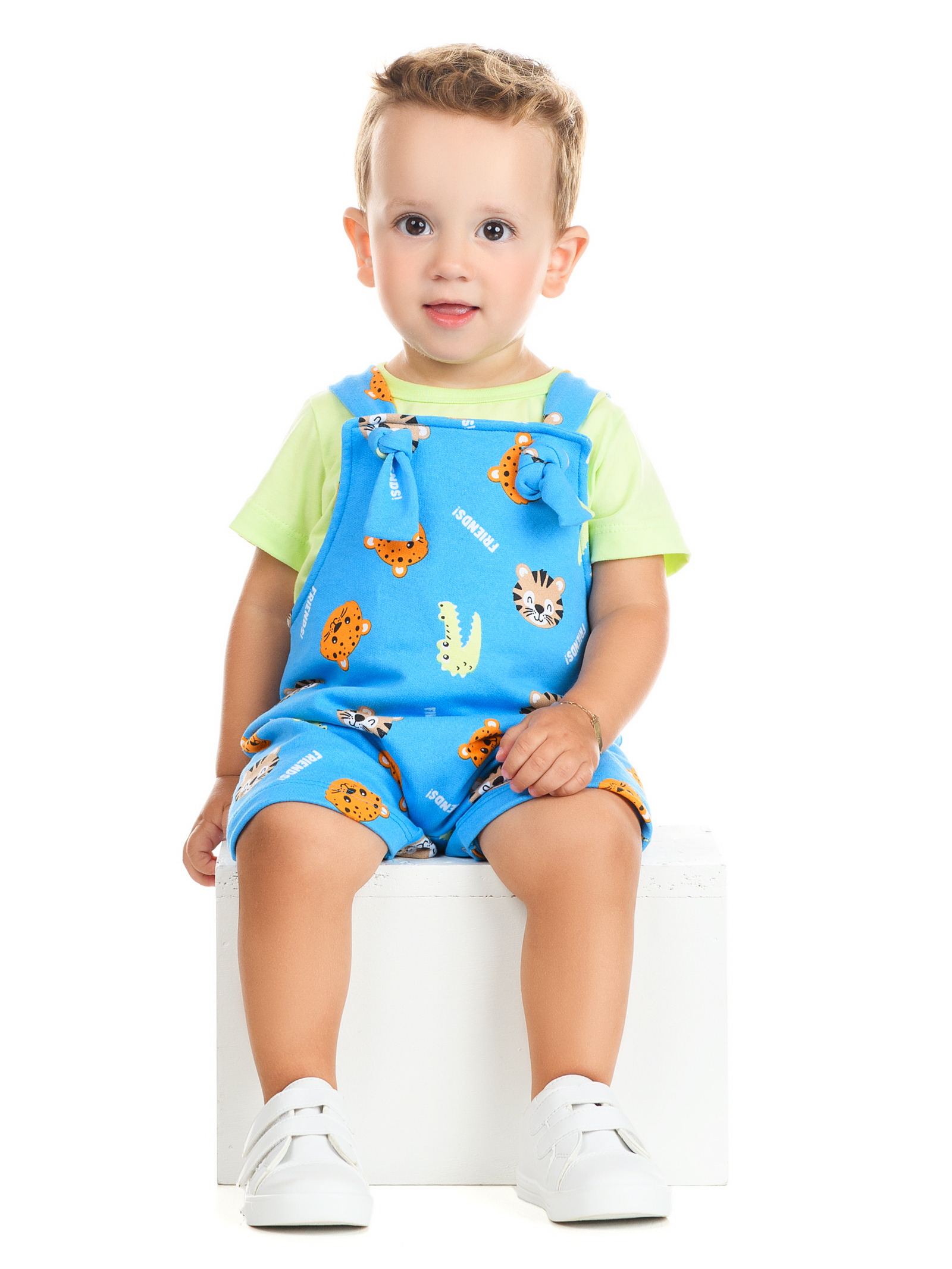 Conforto e diversão com um toque de aventura! Este conjunto é a escolha perfeita para o seu pequeno explorador. A jardineira em moletinho estampado com divertidos animais do safari é prática e super confortável, e possui botões de pressão na parte inferior, que facilitam na hora de trocar a fralda. Acompanha uma camiseta lisa em meia malha, que é leve e macia, garantindo total liberdade de movimento. É a roupa ideal para as brincadeiras e passeios, combinando estilo, praticidade e conforto para o seu filho.