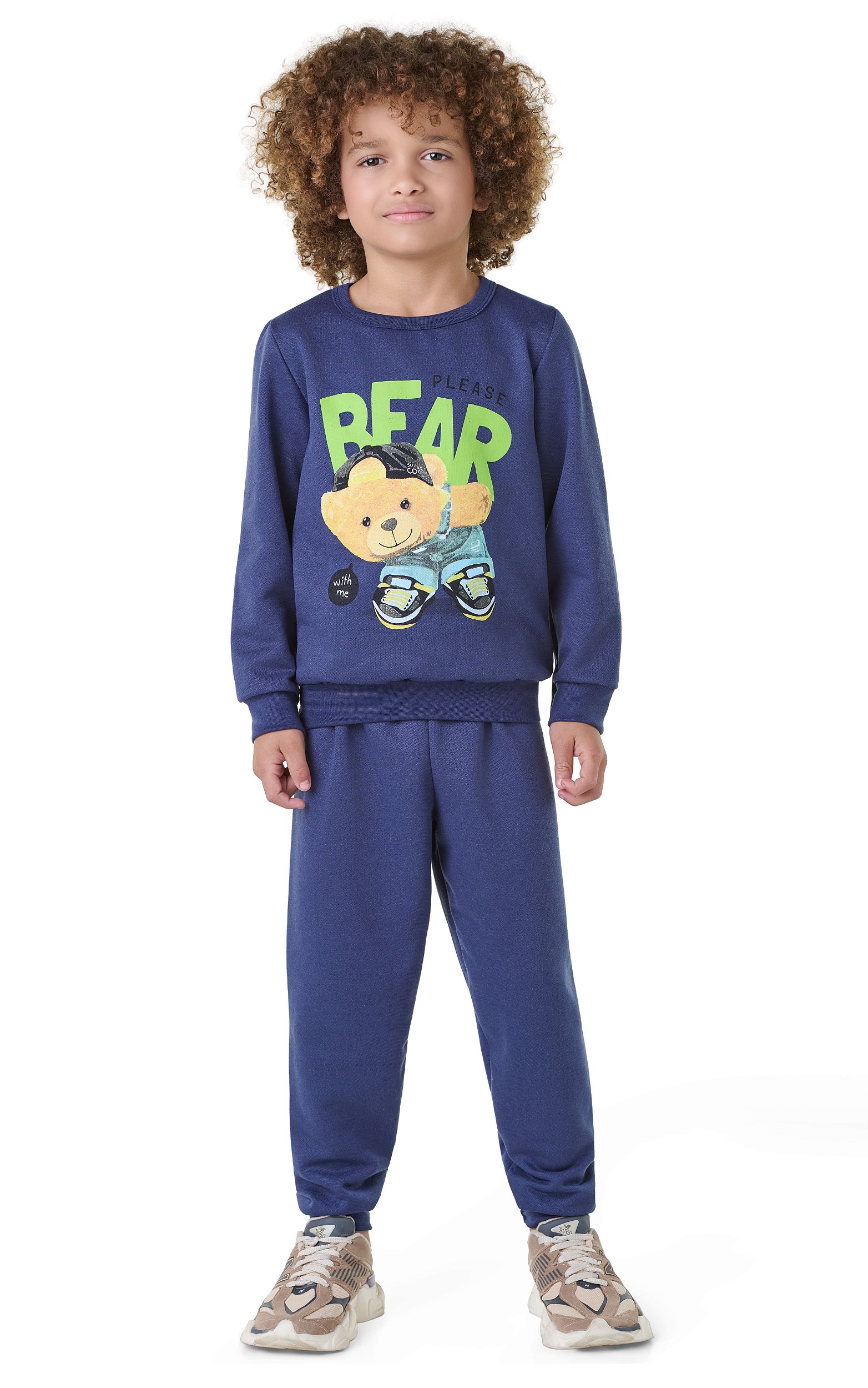 O conjunto infantil menino em moletom peluciado com estampa de urso é a escolha ideal para manter os pequenos aquecidos com conforto e estilo nos dias frios.