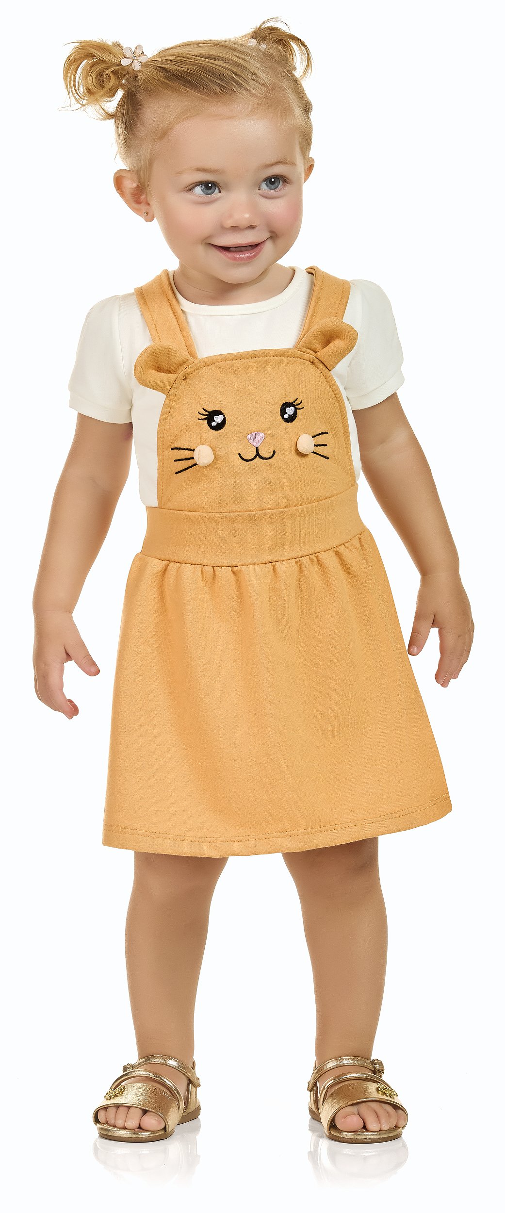 Um look super fofo e cheio de charme para o dia a dia da sua pequena! Este conjunto é a escolha perfeita para unir conforto e estilo. A blusa, feita em cotton penteado super macio, garante total liberdade de movimento para as brincadeiras. Acompanha uma charmosa salopete em moletom touch, com toque super macio e confortável. A peça tem um lindo bordado frontal com um detalhe de bombom, além de alças ajustáveis que garantem o ajuste perfeito para o corpo da criança. É a combinação ideal para o verão, oferecendo um look moderno, prático e confortável!
