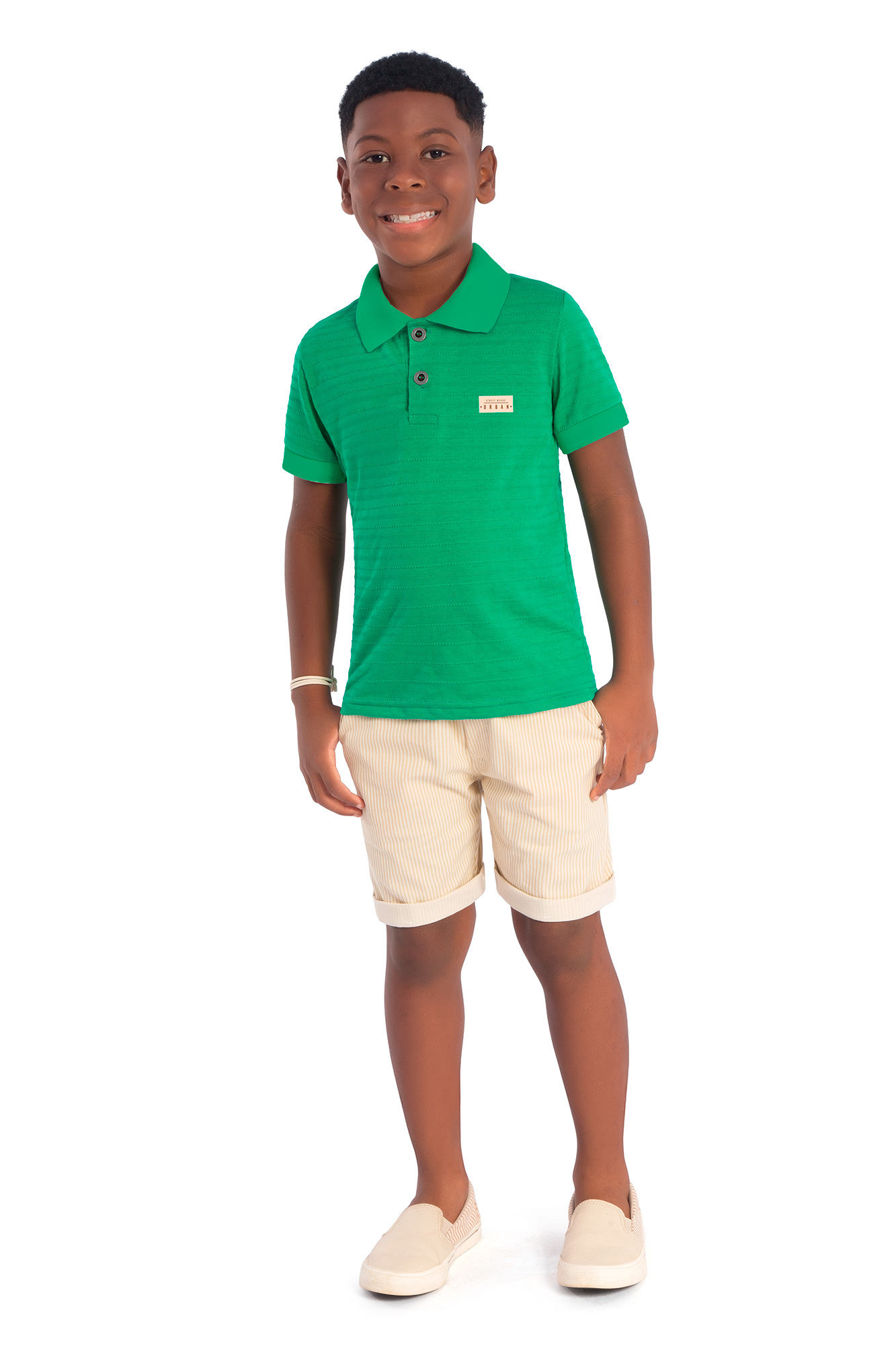 Estilo e conforto para o seu pequeno! Este conjunto é a escolha perfeita para qualquer ocasião, unindo um visual clássico com a praticidade que o dia a dia exige. A camisa polo, feita em meia malha piquet correntinha, possui um peitilho e gola e abertura nas mangas em retilínea, que dão um toque de elegância e sofisticação. Acompanha uma bermuda em sarja com elastano, que garante total liberdade de movimento e um caimento impecável. Com barra italiana, braguilha falsa e bolso, a bermuda tem um cadarço funcional para um ajuste perfeito na cintura.