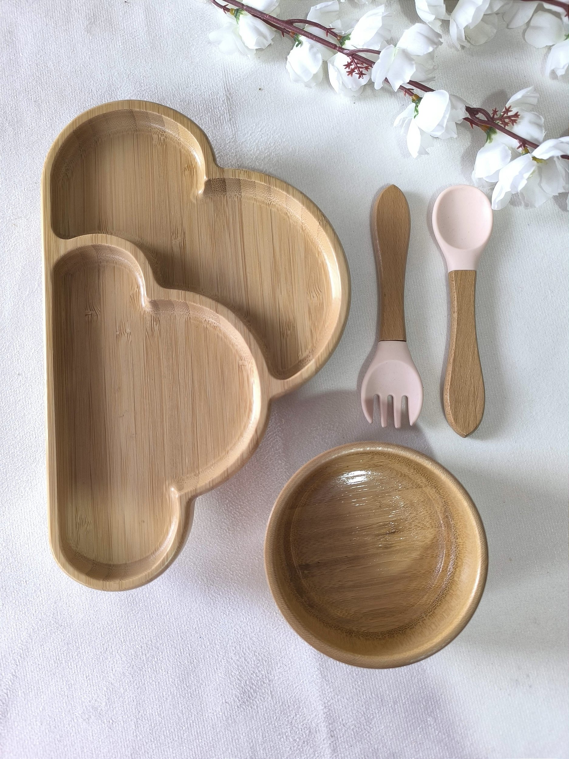 1 Prato em Bambu com Ventosa de Silicone: A base de ventosa garante que o prato fique fixo na mesa, minimizando a bagunça. O formato divertido e as divisórias incentivam o bebê a explorar os alimentos.