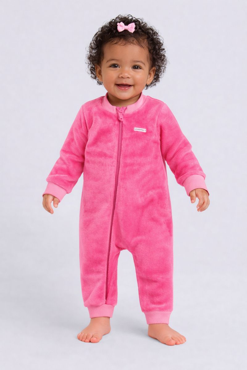 O Macacão em Fleece com Zíper e Punho em Ribana é a escolha ideal para manter o bebê aquecido e confortável.